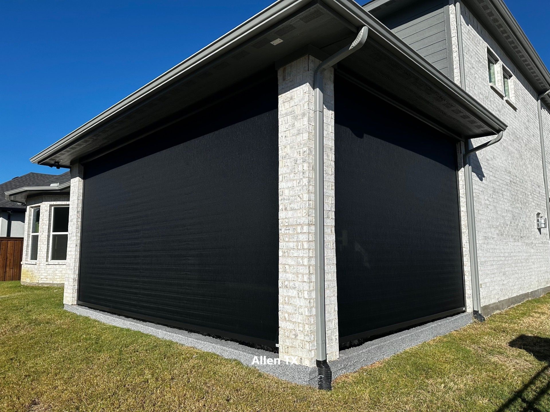 For those who want maximum privacy and sun protection, our blackout motorized shades are an excellent choice. These shades completely block out sunlight, creating a shaded and private outdoor retreat. Ideal for patios that receive intense afternoon sun or for homeowners who prefer more privacy, blackout shades help keep your patio cool and shielded. Their heavy-duty fabrics are built to withstand Allen’s weather conditions, offering durability and style without sacrificing functionality.